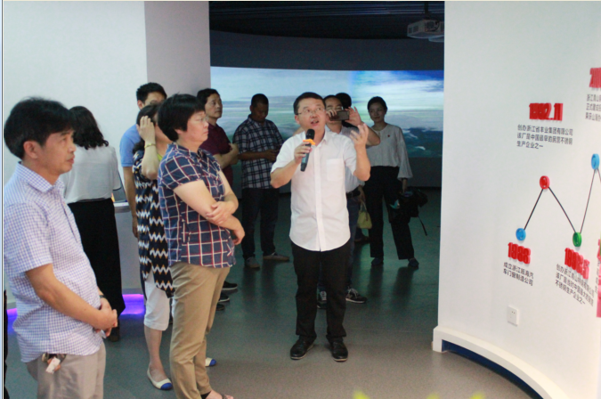在刘海的带领下,廖宝云一行来到了党群中心参观。刘海对党群中心命名的含义进行了讲解,并通过展板和宣传片等对壹号娱乐的发展史、发展现状、壹号娱乐文化和瑞浦的党建工作作了细致汇报。