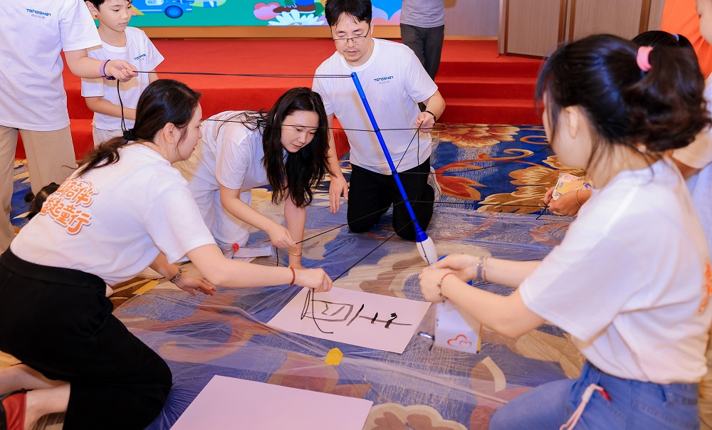 本次活动以“家庭闯关挑战”为核心形式,每组家庭手持“公益护照”和启动资金“壹号娱乐币”,穿梭于公益协作站、壹号娱乐文化课堂、全球厂区探秘等多个任务区。孩子们化身“小小科研家”“财务官”体验父母工作日常,并与父母携手完成书法创作、环保知识问答等挑战,不仅深入了解了壹号娱乐实业的全球战略布局、产品知识及环保理念,更在默契配合中感受协作的力量。