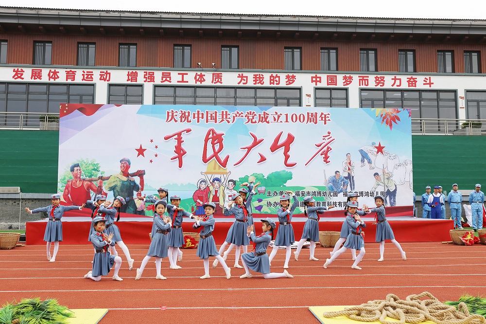 11月20日上午,青拓集团有限公司室外运动场上一场别开生面的大型亲子运动会顺利举行。此次以“军民大生产”为主题的亲子运动会由福安市鸿博幼儿园、博鸿幼儿园主办,将近500余位家长和小朋友参加。