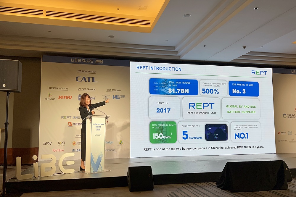 大会上,瑞浦兰钧欧洲子公司负责人程丹丹发表了主题为《前沿问顶技术定义绿色能源未来》的演讲,介绍了瑞浦兰钧的ESG碳中和路线和问顶电池的动态进展,深度阐述了问顶320Ah储能电池和158Ah动力电池的创新亮点和战略意义。