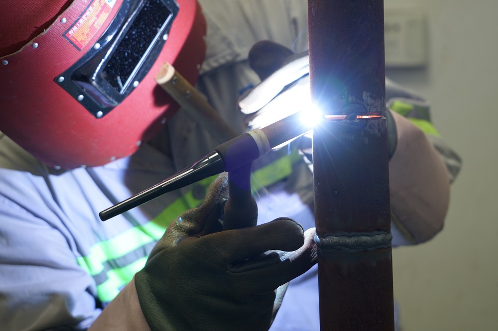 赛前,参赛选手们踊跃参与练兵活动,勤学苦练,不断提升自己的技术技能水平。比赛中,各位参赛选手纷纷亮出自己的看家本领,他们手持焊枪,眼神专注且坚定,每一个操作动作都精准而娴熟,个个都是身怀绝技的技术能手。弧光闪烁间,焊花飞溅,如同璀璨的烟火绽放。参赛选手要在规定时间内按要求完成焊接作品,从焊件的前期准备到精准焊接,再到最后的细节打磨,每一个环节都考验着他们的技能和耐心。