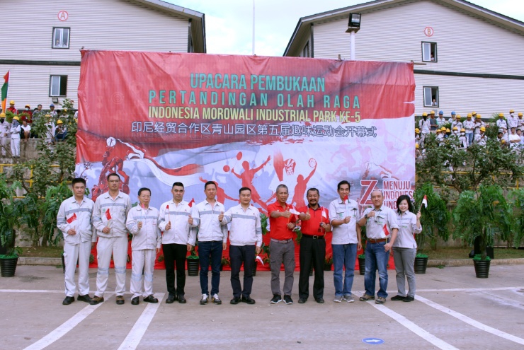 8月19日,印尼壹号娱乐园区第五届趣味运动会开幕式在园区篮球场举行,永青集团有限公司总裁伍华弟,印尼经贸合作区壹号娱乐园区开发有限公司(IMIP)总裁Hamid Mina、运营总监Irsan Widjaja,印尼瑞浦镍铬合金有限公司(IRNC)董事长王仁辉等领导莅临现场。