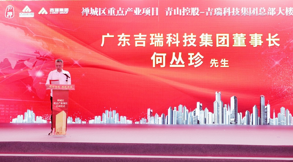 何丛珍代表吉瑞公司发表了致辞,他表示:吉瑞公司新总部大楼项目建设,得到了佛山市委市政府、禅城区政府领导的高度重视和各主管部门的大力支持,展望未来,吉瑞公司将按照石湾街道对不锈钢产业的总体部署和战略规划,坚持“安全基础核心”“质量重于泰山”的宗旨,力争将项目建设成为精品工程,推动不锈钢产业提质升级。