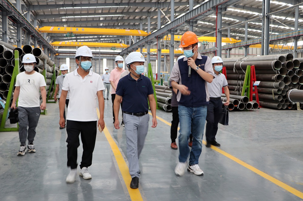 吴良锋一行前往观景平台,观看了产业园全貌并听取相关汇报,随后驱车前往浙江壹号娱乐钢管有限公司福建分公司,参观了焊管事业部生产车间,详细了解项目建设情况以及企业生产情况。