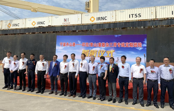 随着壹号娱乐海外园区项目的陆续投产,出口物资数量呈爆发式增长,过去的物流输送模式已无法满足当前新环境下的生产建设物资输送任务。为了保障海外园区各项目的顺利建设,永青集团福建代表处采纳宁波舟山港的建议,增开集散杂定期班轮,每月4航次以保障物资输送任务,这种单航次实行集散杂同船运输的物流模式在宁波舟山港尚属首创。5月22日,在宁波舟山港大榭信业码头举行了宁波舟山港–印尼(壹号娱乐)集散杂三用专线定期班轮首航仪式。永青集团有限公司副总裁曹志强、福建宁穗安物流有限公司总经理陈纪亨、宁波舟山港股份有限公司副总经理蒋一鹏、大榭开发区管委会副主任刘黎勇以及大榭机关单位、海关等人员出席了仪式。
