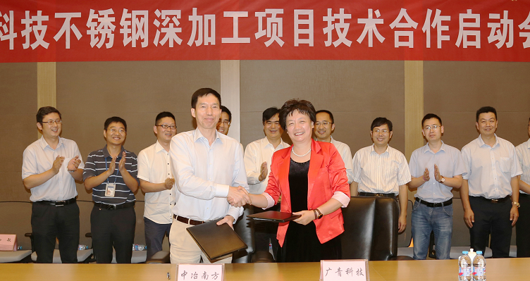 9月22日下午,广东广青金属科技有限公司不锈钢深加工项目技术合作启动会在中冶南方工程技术有限公司科技馆会议室举行,中冶南方党委书记兼董事长项明武、党委副书记兼总经理臧中海,中国第一重型机械集团公司常务副总裁孙敏,广青科技董事长林夏苗等领导出席了此次会议。