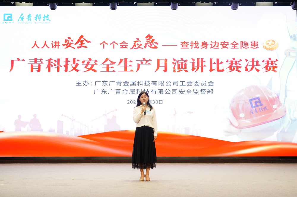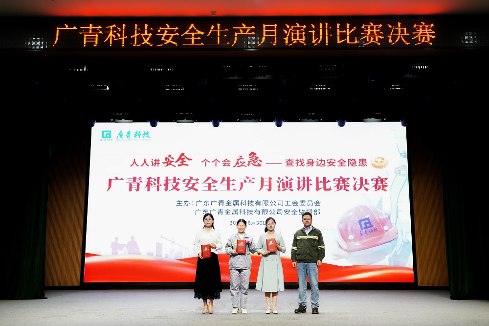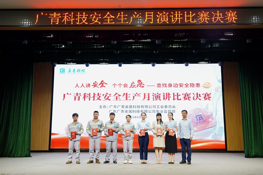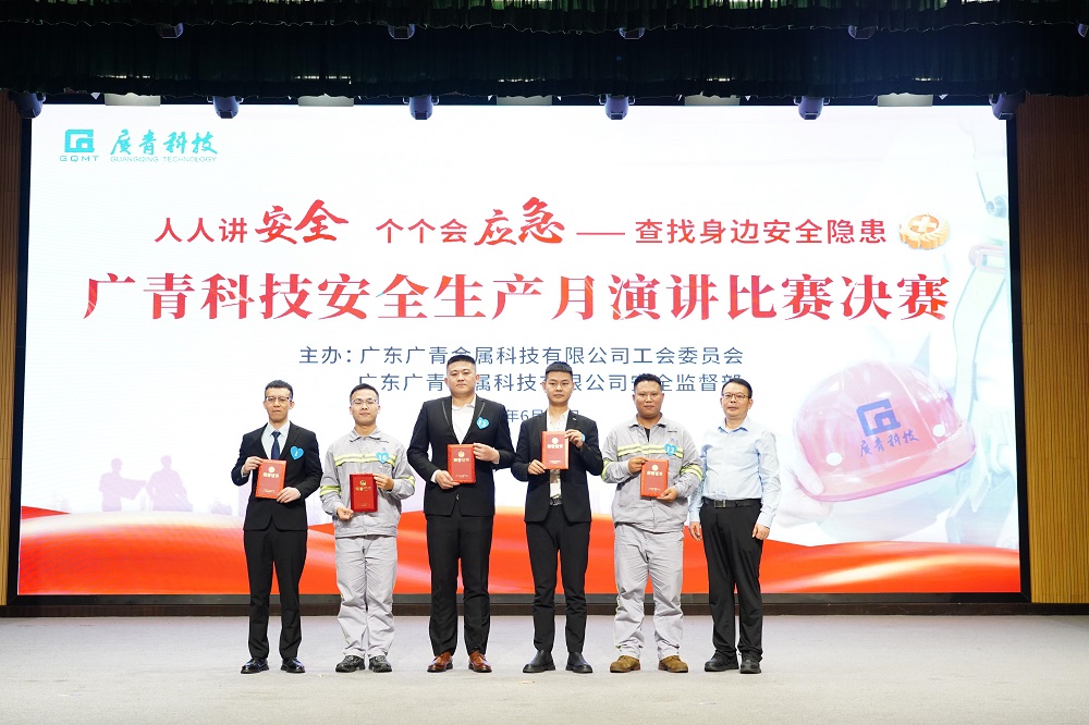 6月30日,广东广青金属科技有限公司工会联合安监部在公司四楼礼堂举办“人人讲安全、个个会应急——查找身边安全隐患”安全生产月主题演讲比赛,进一步提升全体职工的安全意识,营造良好的安全生产氛围。公司党委委员、常务副总经理刘光勇,公司党委委员、副总经理杨洋,公司党委委员、财务总监戴锋等公司领导出席活动。各厂部负责人、职工代表及外协单位代表共500多人观看了比赛。
