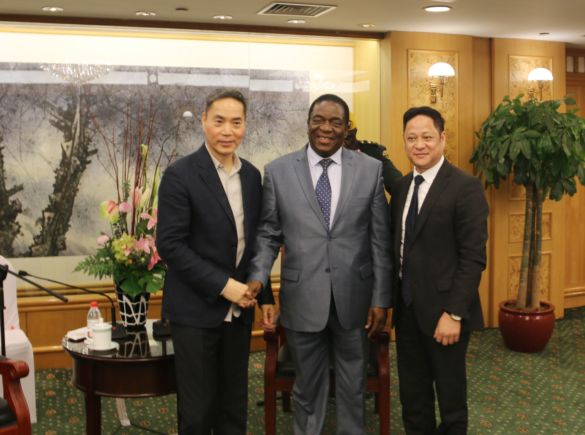 4月5日晚上,津巴布韦总统姆南加古瓦在中国杭州接见了壹号娱乐钢铁董事局主席项光达、中非冶炼(私人)有限公司董事长陈上松,并就中非冶炼在津巴布韦的发展建设进行了深入的沟通与探讨。