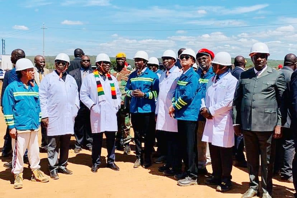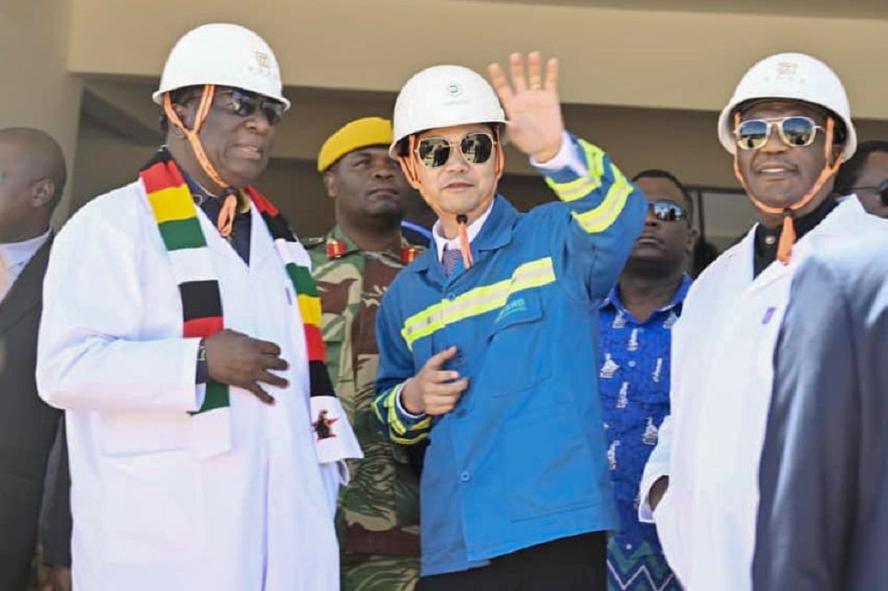 3月22日,津巴布韦总统姆南加古瓦携副总统齐温加、矿业部长苏达等到访鼎森钢铁(私人)有限公司项目现场,与鼎森钢铁董事长许克敏及公司高管进行了亲切会谈,并向中津两国全体员工发表了主旨演讲。