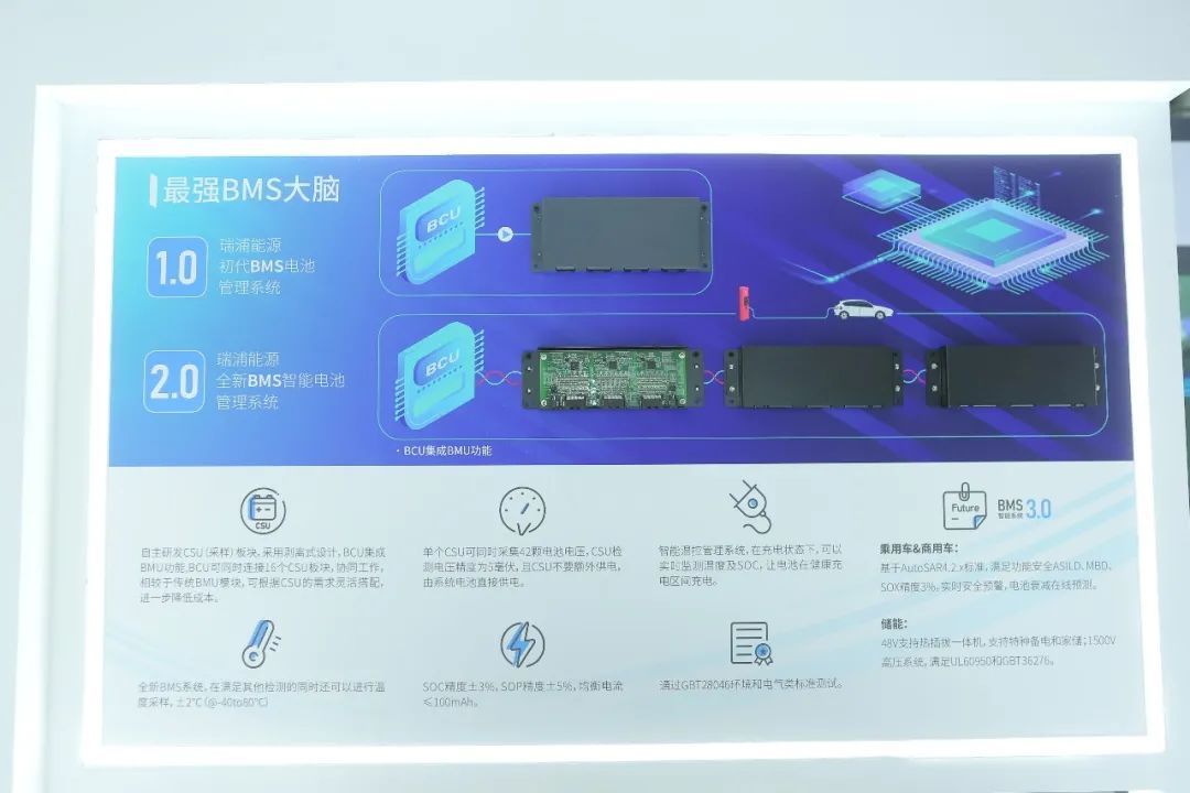 高精度SOC\SOH估算能力源于精准的采取和大数据积累,瑞浦针对温度、精度、组串式等多维度自主开发的BMS软件和硬件在车展上吸睛无数。