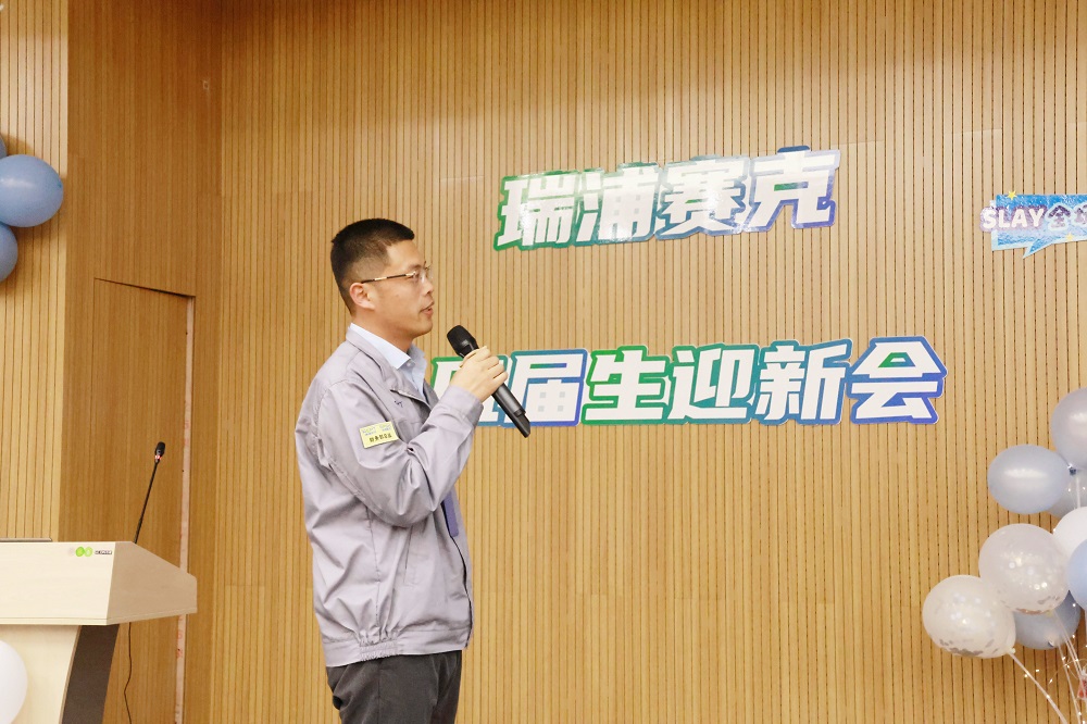 制造中心副总监熊小强对新入职应届生们的到来表示热烈欢迎,并详细介绍了公司的核心价值观、使命愿景和发展历程,并结合自身经历为应届生们答疑解惑。