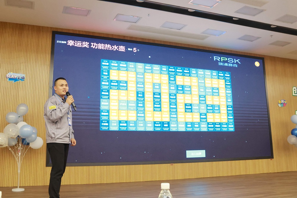 迎新会上,老员工代表分享了自己在公司的工作感想和生活体会,同时结合自身经历鼓励新员工们在未来的工作生活中要勇往直前、不畏困难。抽奖环节,财务总监李雪林、质量保障部副总监王清祥、技术中心副总监王绪向分别为员工抽出了一二三等奖,让新员工们收获了丰富多样的礼品。互动环节,公司领导与员工一同参与“拍拍舞”环节,拉近了彼此之间的距离,现场呈现一片其乐融融的氛围。