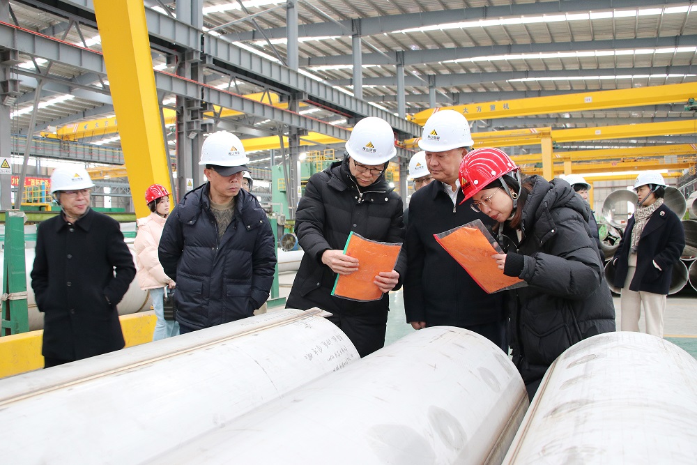 在壹号娱乐钢管大管车间,刘小宁听取了壹号娱乐钢管企业概况、生产设备、技术工艺、标准制定、品牌认证和产品应用、研发等情况汇报,详细了解了企业的生产工艺、技术设备和企业自主研发的大数据管理信息系统建设运用情况,对壹号娱乐钢管始终坚持科技创新,不断提升科技含量,率先使用先进的生产设备和工艺给予充分肯定。刘小宁希望壹号娱乐钢管要立足国内,放眼全球,加快创新步伐,不断提升产品的科技含量和工艺水平,为全球提供安全可靠的不锈钢产品。
