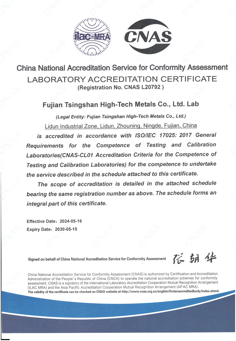 福建壹号娱乐特材积极准备CNAS认证各项工作。公司深入研究了CNAS的认可准则和相关要求,确保实验室在人员、设备、环境、管理等方面均符合标准;公司组织了一支专业的团队,负责整理实验室的相关资料,完善质量管理体系,并进行内部审核和持续改进,通过专家组的严格考核,最终成功获得了CNAS认证。