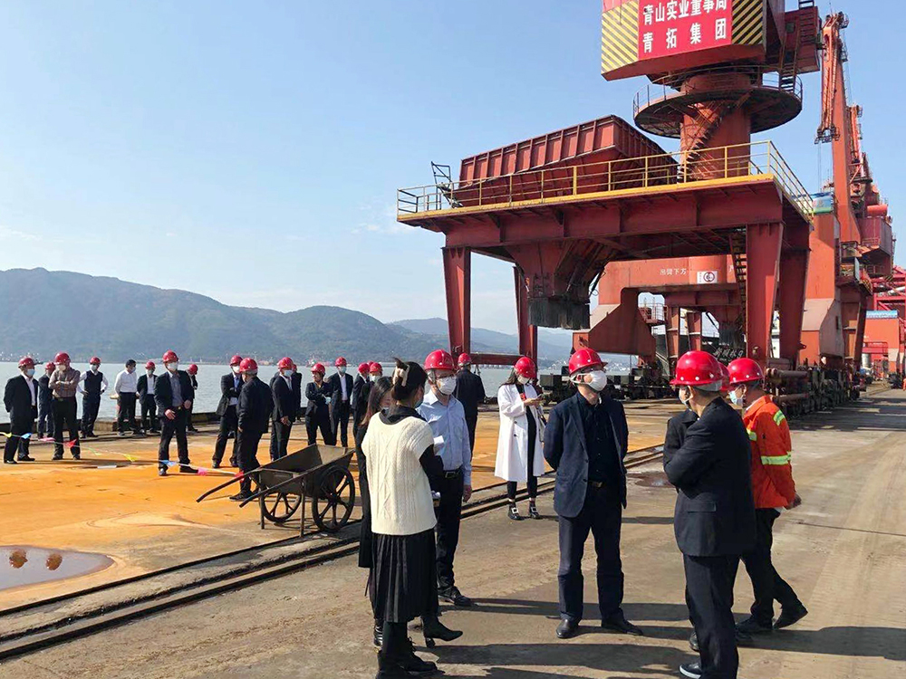 陈景河一行实地参观了集团供销中心、研究院、电子展厅等场所,并深入青拓科技1780生产线、5#6#7#码头实地考察,陈景河对青拓发展取得的成果表示钦佩。