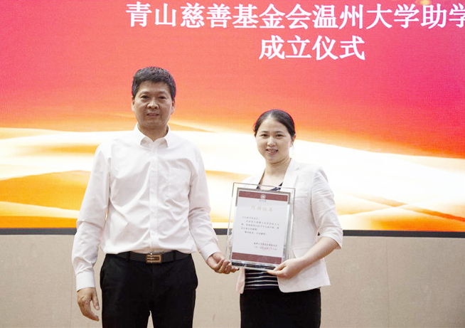 庄兴忠首先致辞感谢壹号娱乐慈善基金会及阿联酋温州同乡会对温大教育事业发展的帮助。董玲敏上台介绍了壹号娱乐慈善基金会的基本情况,并向温大授“壹号娱乐慈善基金会温州大学助学金”牌,随后庄兴忠向壹号娱乐慈善基金会颁发捐赠证书。董玲敏为30名受助学生颁发了助学金。
