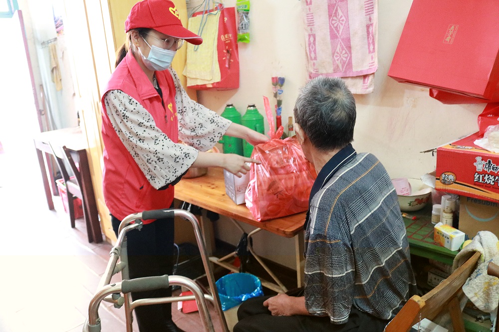 志愿者们送上牛奶、麦片、沐浴露和洗发水等礼品,希望老人们在日常生活中过得更加舒心与安心,并热情地陪老人聊天解闷,力求驱散他们的孤独感,使他们感受到节日的快乐。
