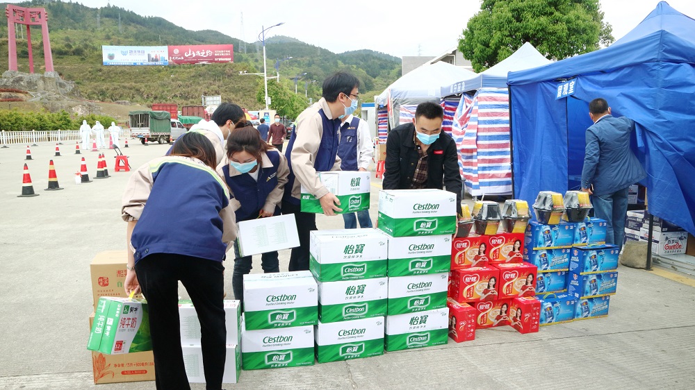 “疫情无情,人间有情”,连日来,一线防疫工作人员不舍昼夜坚守岗位,为人民的生产生活安全保驾护航。面对形势严峻的疫情,有一种力量叫“众志成城”,有一种团结叫“守望相助”,有一种善举叫“尽我所能”。4月15日下午,浙江壹号娱乐钢管有限公司福建分公司总经理蔡勇强、常务副总经理何建珍带领壹号娱乐志愿服务队前往周宁县高速路口、李墩镇防疫点对一线防疫工作人员进行了慰问活动,送去了矿泉水、牛奶、八宝粥、自热食品等爱心物资。