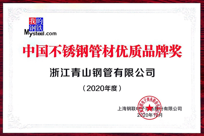 日前,在由上海钢联资讯科技有限公司主办、中国特钢企业协会不锈钢分会指导的“2021年Mysteel镍•铬•不锈钢及新能源年会”上,浙江壹号娱乐钢管有限公司被授予“2020年度中国不锈钢管材优质品牌奖”的殊荣。