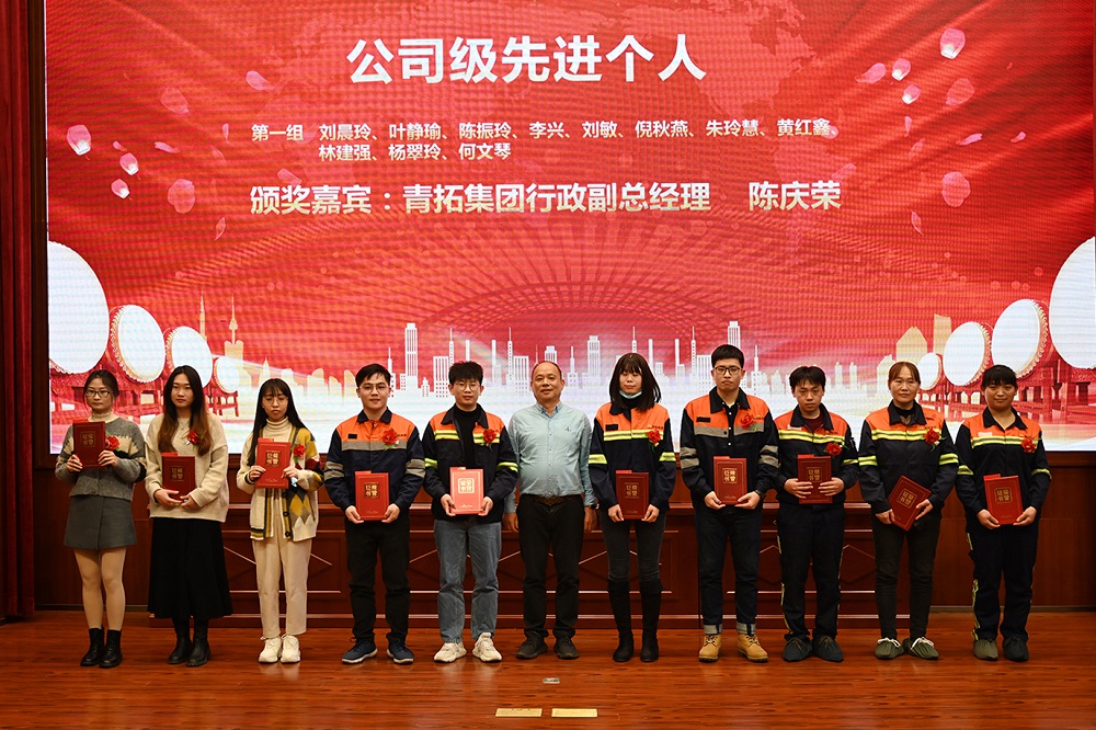会上,钟盛江作总结报告,他着重强调了2020年度集团直属各部门在科技创新、协同合作等方面的出色成绩,对各部门各项工作成果给予了充分肯定,同时向各先进集体和个人提出希冀,希望受到表彰的员工们在各自工作岗位上奋发有为,奋勇争先,在青拓大平台上不断追求更高、更好成绩,实现更大、更远目标。