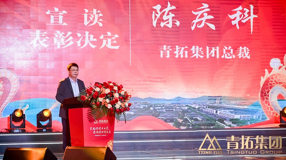 陈庆科宣读表彰决定,并由集团领导对过去一年中表现优秀的先进集体和个人进行表彰。他们在各自的岗位上展现了出色的工作能力和职业精神,为青拓集团的稳步发展做出了卓越贡献。