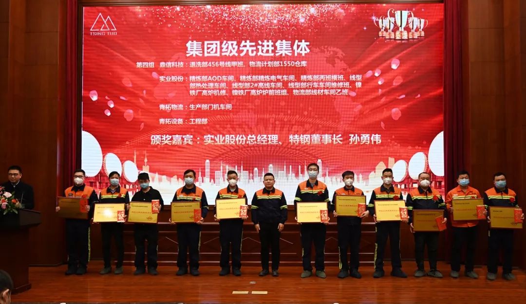 颁奖典礼上,姜海洪首先为荣获集团级先进集体的青拓实业股份精炼部颁奖,精炼部部长李学强代表部门上台受奖。