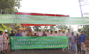 3月9日15时30分,印尼纬达贝工业园区在高旺地举行了400米国道升级铺设通车仪式。Gemaf村村长Kostantein…