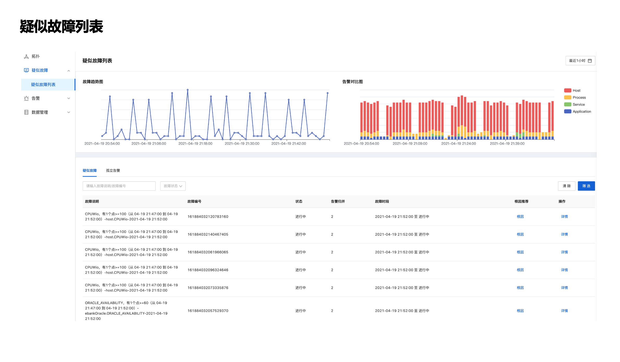 同时,平台通过对业务性能指标数据的采集,实现检测具有一定时序特征或者周期特征的数据,识别异常点。管理员通过可视化界面一站式查看全部未处理疑似故障、故障趋势与告警对比等信息,快速访问故障详情,显著缩短人工诊断的时间,降低故障误报与漏报率。银行基于某次业务事件对平台排障的实际效果进行复盘,确认了必示智能运维平台异常指标检测、多维结果定位、告警复盘分析等能力的有效性。
