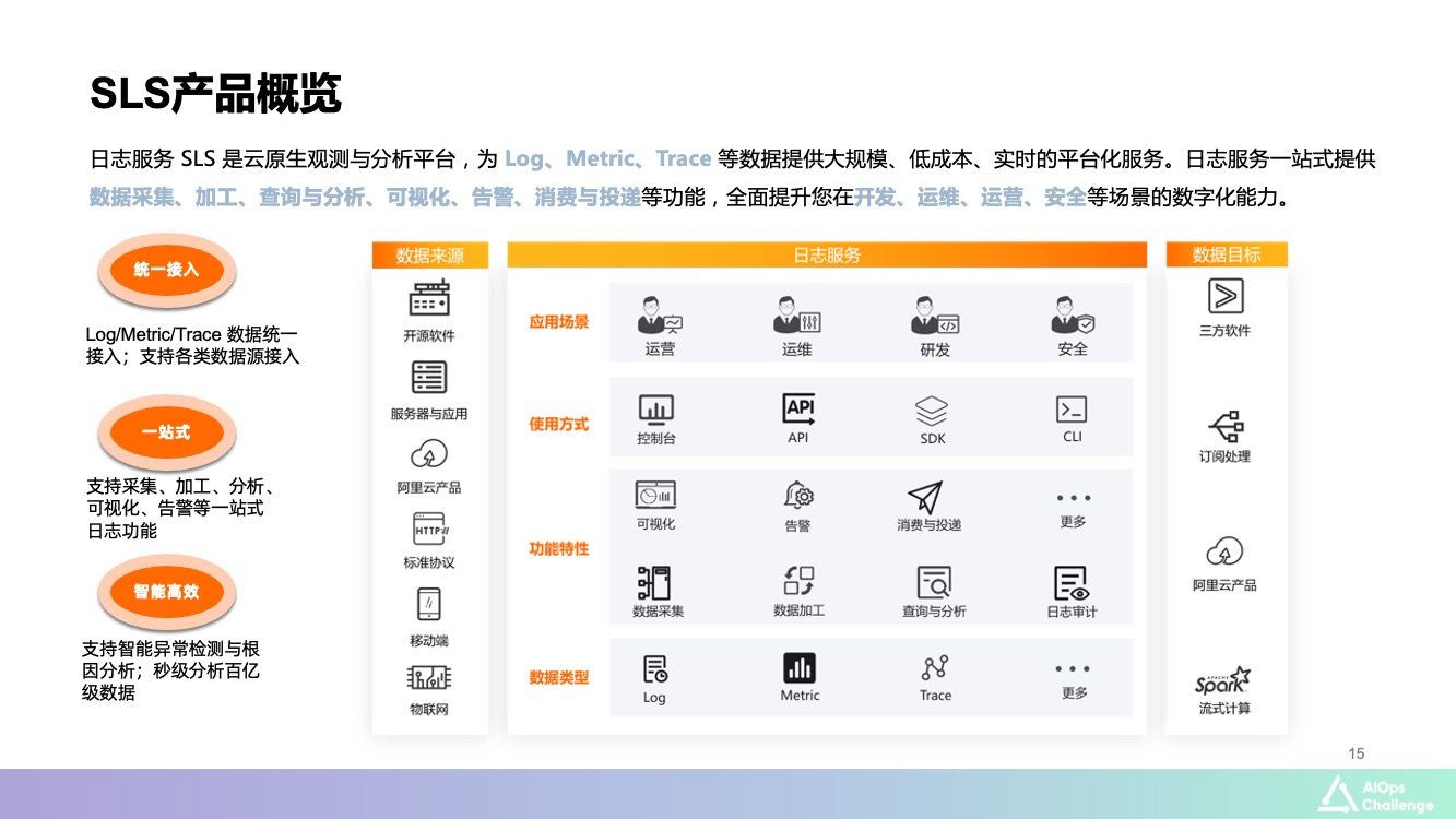 阿里云日志服务 SLS 是云原生观测与分析平台,为Log、Metric、Trace等数据提供大规模、低成本、实时的平台化服务。日志服务一站式提供数据采集、加工、查询与分析、可视化、告警、消费与投递等功能,全面提升在开发、运维、运营、安全等场景的数字化能力。