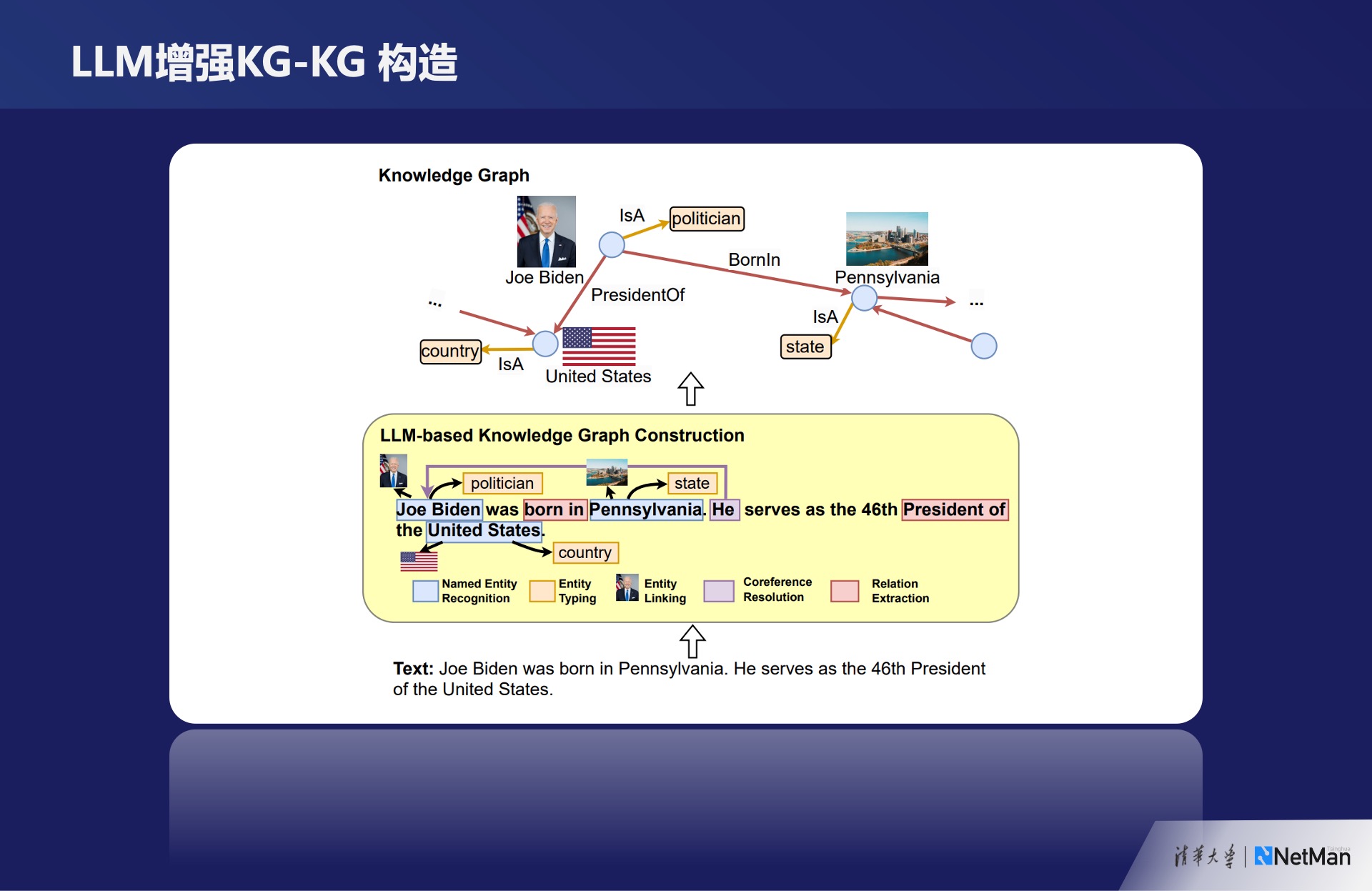 - 利用知识图谱增强大语言模型:将结构化的显性知识图谱与大语言模型结合,以提供更准确、可解释的结果。知识图谱可以用作先验知识,指导大语言模型生成更准确的答案或推理结果。