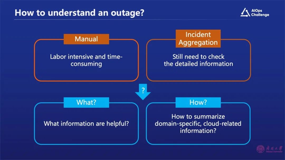感谢各位嘉宾对AIOps挑战赛和研讨会的大力支持,今天我将分享近期我们团队和微软合作基于大语言模型提高对故障理解的工作。