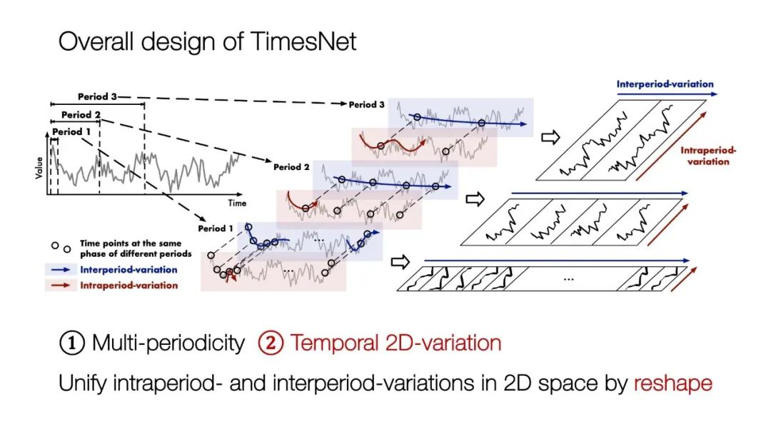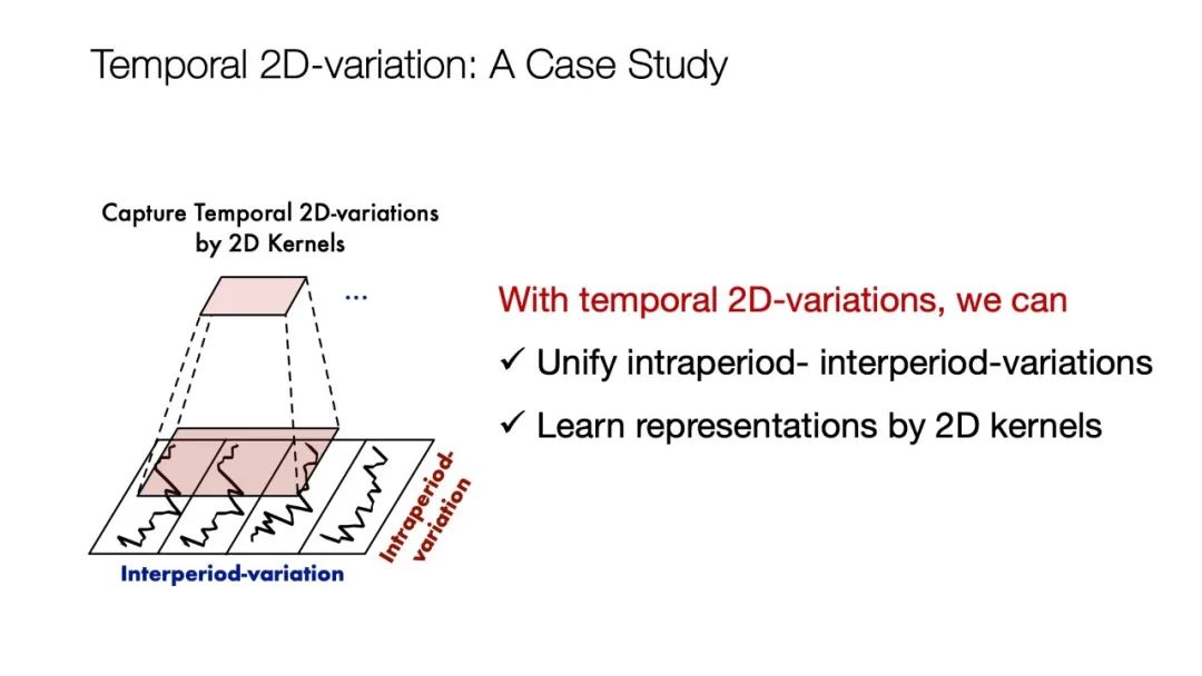 在这种思路的引导下,我们能不能用视觉之中的backbone去处理这种原始的1D的时间序列呢?这就是我们的一个核心概念,通过建模Temporal 2D-variation,可以让视觉的领域和时间序列分析的领域联合起来。