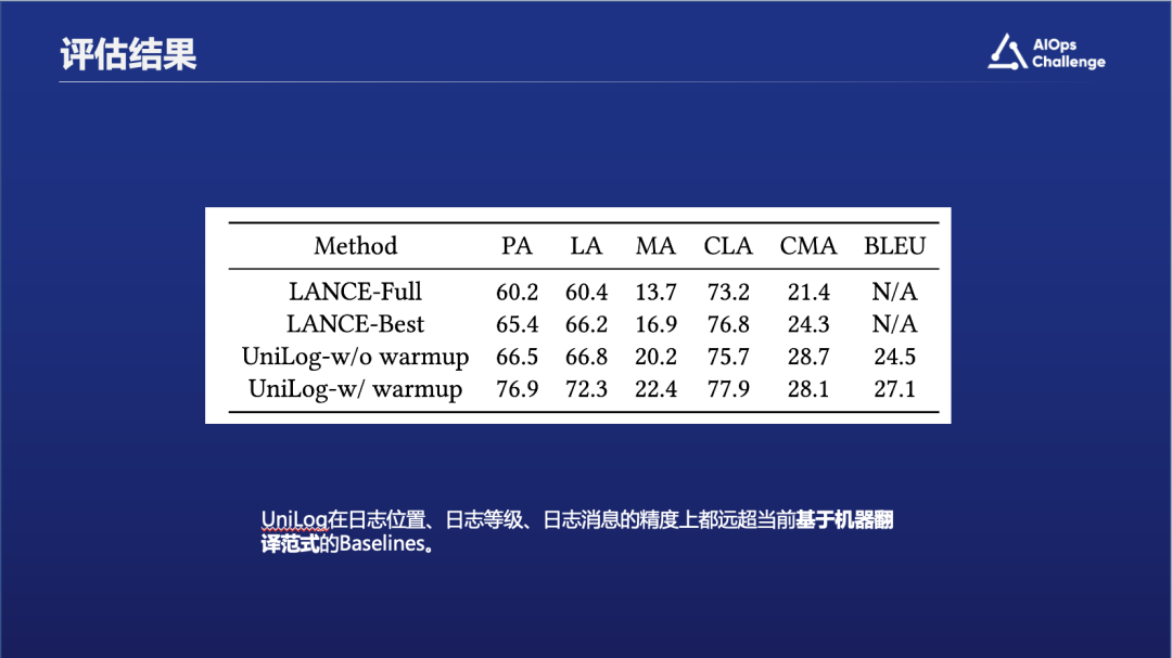 上图表格里展示了不同的指标,比如PA是生成日志位置的精确度,LA是日志级别的精确度等等。