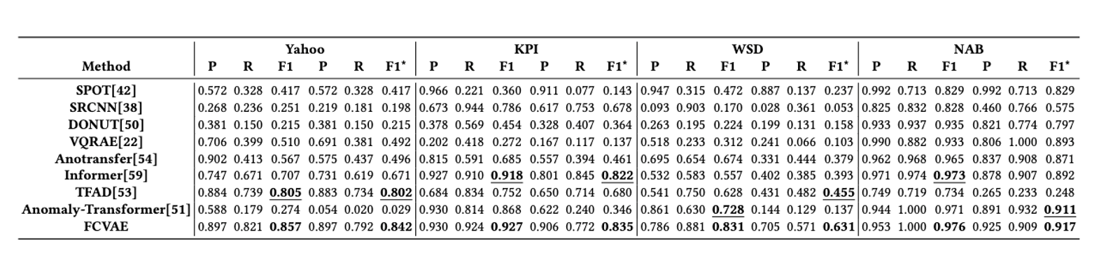 因此,文章提出了一种新的无监督时序异常检测方法——FCVAE,它由于充分使用了频域信息,有效的解决了VAE重建正常数据不够优秀的缺陷。此外,文章设计了全局频率信息提取和基于Target Attention的局部频率信息提取模块,使得重建能同时利用全局频率信息和局部频率信息。文章基于公开数据集和微软的生产环境数据进行了实验,表明FCVAE显著提升了时序异常检测性能。