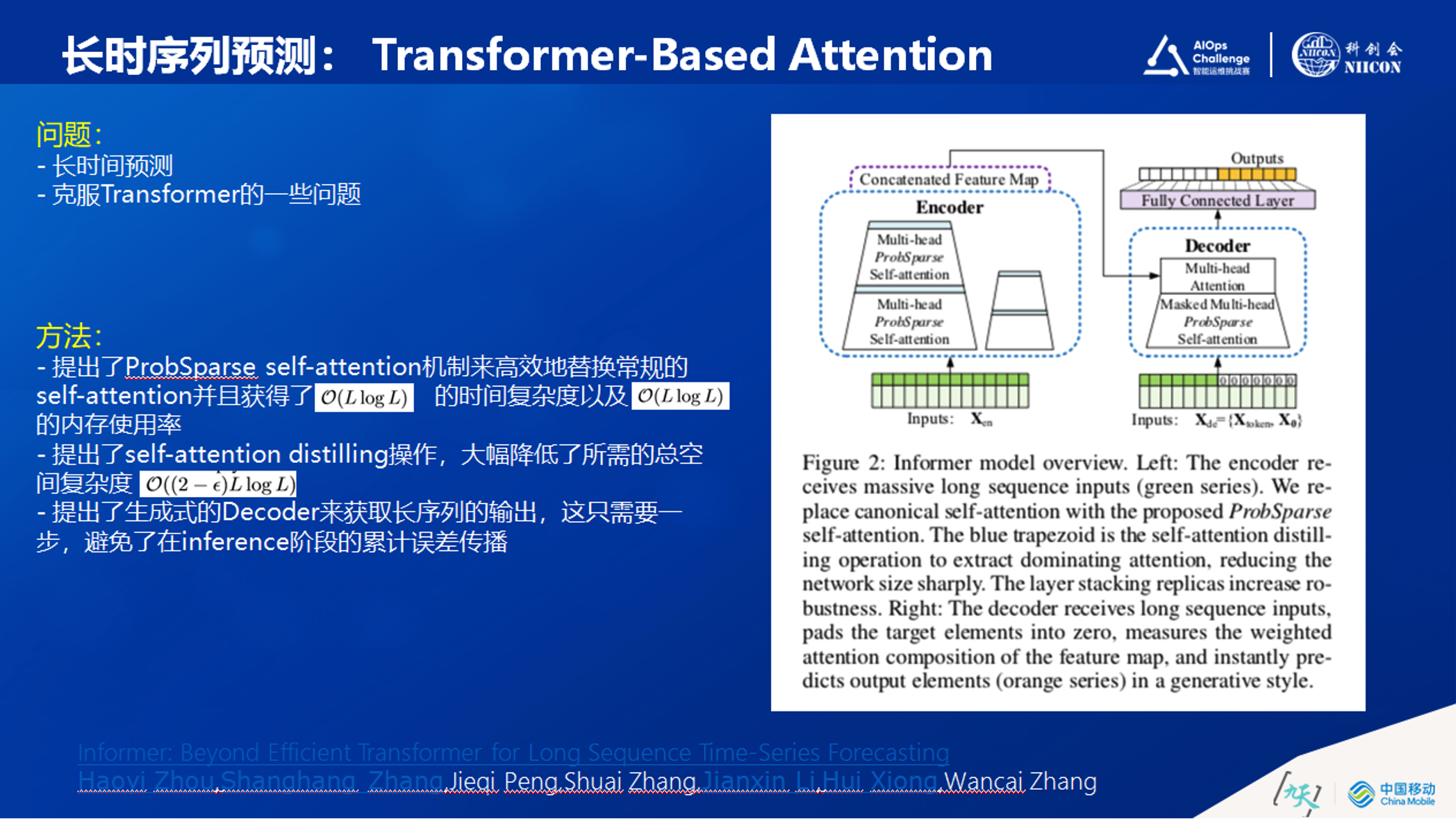 本篇文章介绍基于Transformer-Based Attention的时序预测。文章针对Transformer存在的时间和空间复杂度高的缺陷,本文提出ProbSparse self-attention机制,基于原来的transformer做了改进,用在长时时序序列场景。