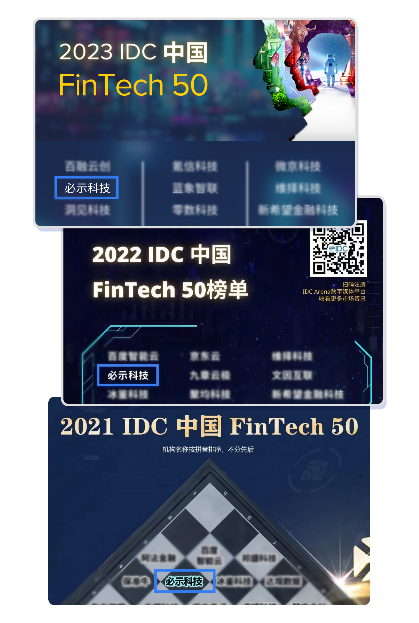 近日,2023年度“IDC中国FinTech 50”榜单正式揭晓,必示科技“三度”荣耀上榜,以技术赋能业务创新。