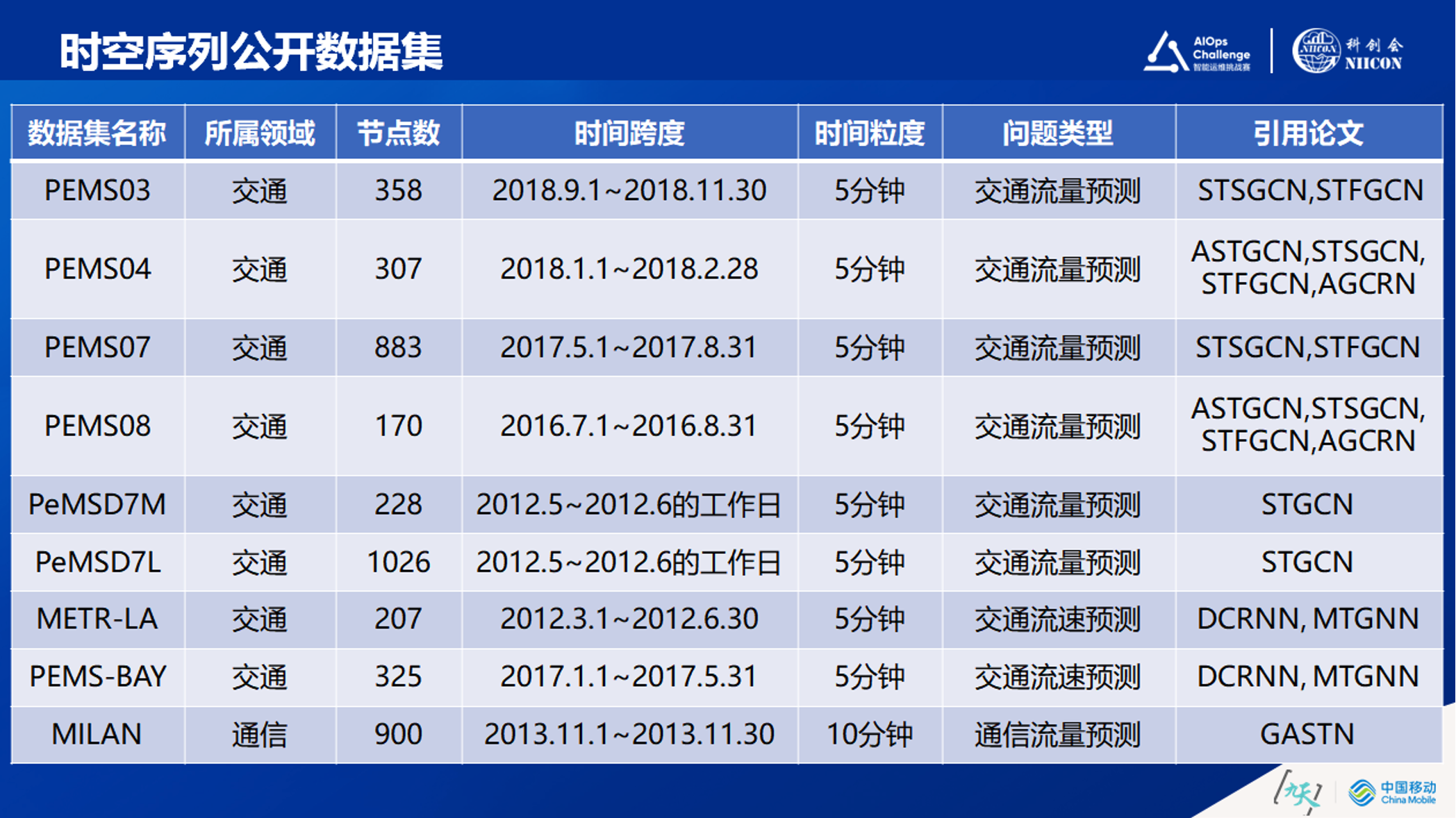 通过对业界时空序列数据集梳理发现,交通领域数据集占绝大多数,只有最下面MILAN公开数据集是属于通信领域的。针对交通领域的时空序列预测和移动通信网络有非常多的不同之处,相信这种差异也存在其他领域。