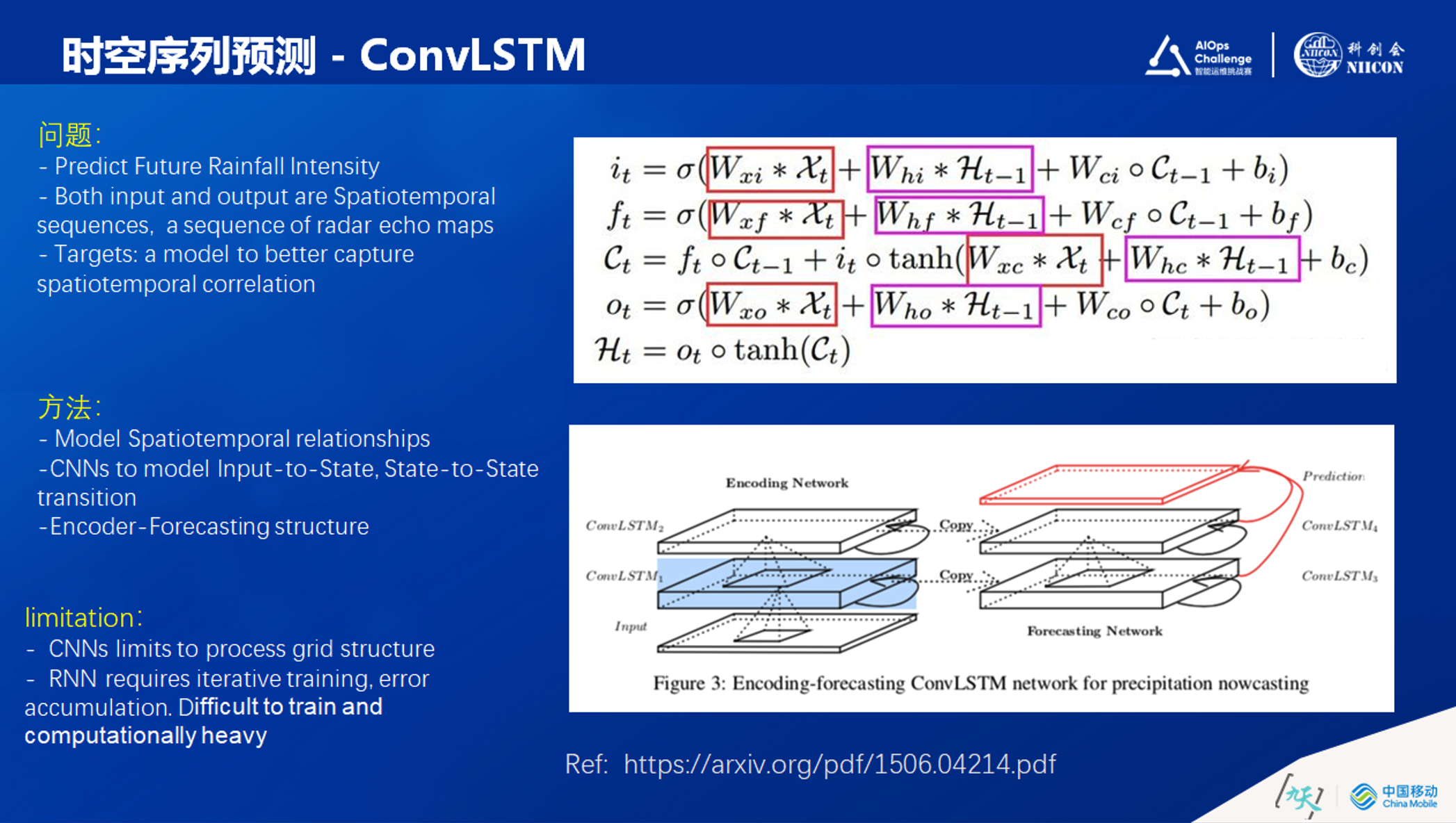首先列举的是ConvLSTM,通过“预测未来降雨强度”,解决时空序列的问题(第一篇真正意义解决时空预测问题的文章)。